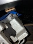 Felt my way around the back of the rim and found a somewhat hidden obstruction! A connector plug for the electronic parking brake. This felt awfully close to the back edge of the rim. The connector is toward the front of the car. It's a rather soft rubber, but will it clear?
